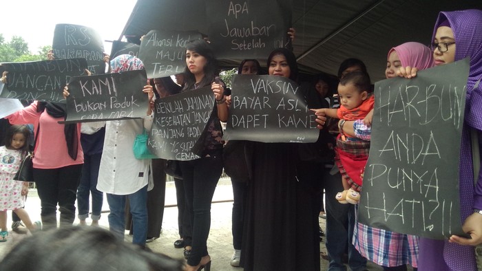 "Meminta Direktur RS Harapan Bunda secara terbuka menjawab dan memenuhi tuntutan-tuntutan orang tua korban vaksin palsu tanpa adanya diskrimiasi serta menjamin upaya pemulihan yang efektif bagi para korban," kata Putri.