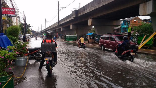Genangan air juga dilaporkan oleh Djaryati. "Genangan air setelah hujan deras di sepanjang Jl Pangeran Jayakarta, sebelah Wisma