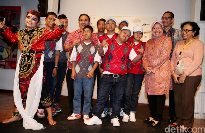 Dia berbicara di sela pameran lukisan karya anak-anak berkebutuhan khusus. Wali Kota Surabaya Tri Rismaharini membuka pameran itu.