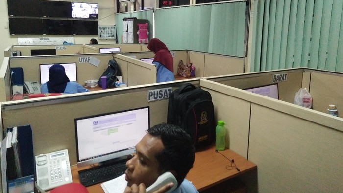 detikcom mendatangi kantor operator 119 AGD Dinkes, Jl Sunter Permai, Jakarta Utara, Jumat (22/7/2016). Di sana, ada sejumlah petugas yang bertindak sebagai operator penerima telepon dari warga. Dari telepon itu, sang operator akan mendistribusikan bantuan ke daerah-daerah tempat ambulans berada.