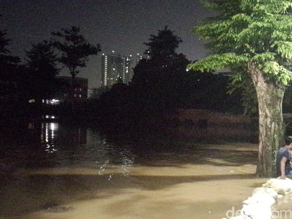 Tanggul darurat dibuat dengan memasang tumpukan karung berisi pasir di sepanjang kali yang berada di sisi permukiman warga. Semakin ke dalam, banjir di permukiman itu semakin tinggi. Bahkan ada yang mencapai hingga ketinggian 1,7 meter.