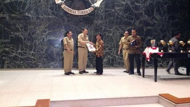 Sambutan penerimaan penghargaan ini digelar Pemerintah Provinsi DKI di Balai Kota, Jl Medan Merdeka Selatan, Jakarta, Senin (25/7/2016). Hadir Wali Kota Jakarta Pusat Mangara Pardede, para lurah se-Jakarta Pusat, hingga petugas pasukan oranye (PPSU Dinas Kebersihan) dan pasukan biru (Dinas Tata Air).