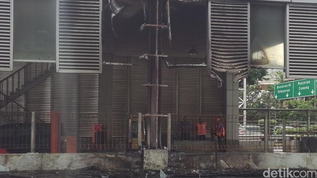 Meski hangus dan rusak, operasional pintu masuk tol di Senayan yang mengarah ke Slipi tersebut tetap beroperasi normal. Bus TransJakarta tetap bisa melintasi lokasi kejadian.