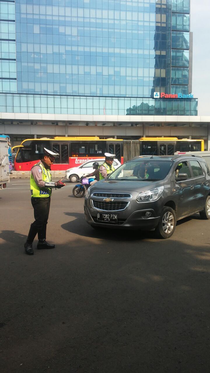 "208 Pengendara mobil terkena tegur dari arah Bundaran HI ke Tosari," ujar salah seorang polisi yang mengawasi di sekitar Sudirman-Thamrin, Rabu (27/7/2016).