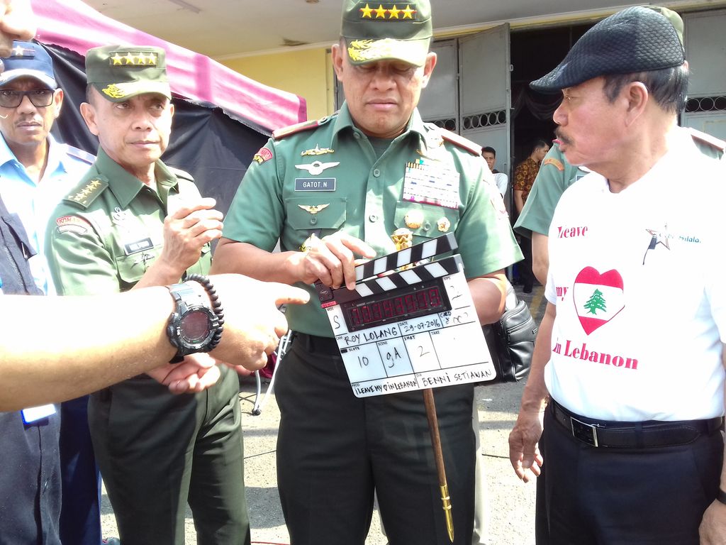 Di lokasi syuting, Jenderal Gatot melihat-lihat proses syuting yang diikuti oleh beberapa prajurit TNI. Dia bahkan ikut menjadi clapper atau orang yang meng-clap papan scene film.
