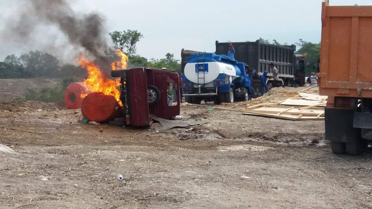 Para pekerja berusaha menyelamatkan diri dengan membawa keluar sejumlah alat berat. BPBD Pidie sempat mengerahkan mobil pemadam kebakaran ke lokasi, namun dipaksa kembali oleh warga.