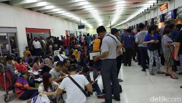 Penumpang Lion Air yang delay di Bandara Soekarno Hatta (Foto: Rahadian/pembaca detikcom) |