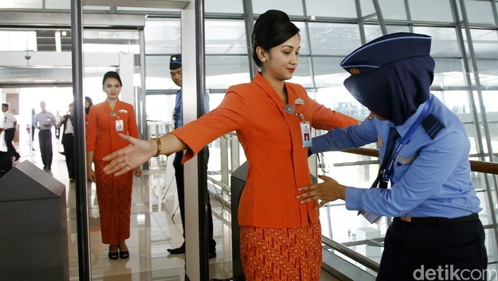 Proses simulasi diawali dengan proses pengecekan keamanan (security check). Petugas keamanan menggunakan metal detector mengecek tubuh penumpang dari barang-barang metal. Sementara itu barang penumpang dimasukkan kedalam x-ray.