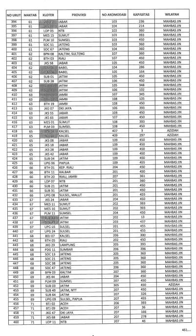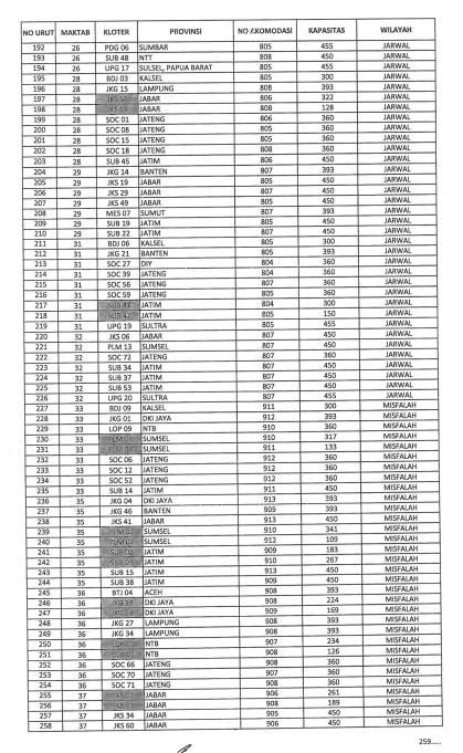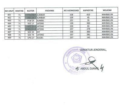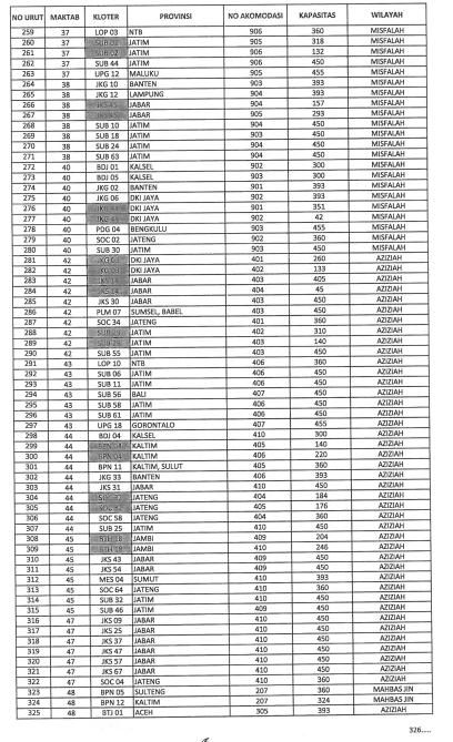 Lewat surat keputusan nomor B-28.582/Dt.II.III.1/Hj.06/07/2016, undian kelompok jamaah menempati pemondokan sudah ditetapkan. Berikut daftarnya: