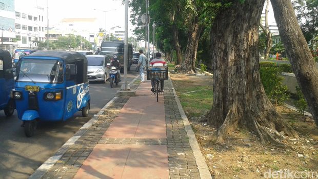 Jumat (5/8/2016), detikcom mendatangi salah satu trotoar yang nyaman di Jakarta yakni di ruas Jl Diponegoro tepatnya di depan Rumah Sakit Umum Pusat Nasional (RSUP) Dr Cipto Mangunkusumo. Trotoar ini cukup lebar yakni sekitar 3 meter dan dilengkapi akses khusus untuk kaum difabel.