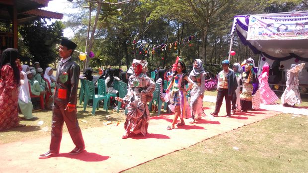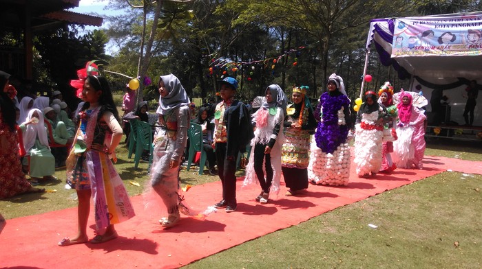 Acara yang digelar di Bangka Botanical Garden (BBG) Minggu (7/8/2016) ini, menampilkan peragaan busana berbahan barang bekas dan lomba yel-yel. Seluruh peserta tampak begitu bersemangat menunjukkan kebolehannya meski harus berpanas-panasan di bawah terik matahari.
