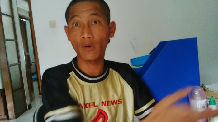 "Bisa iya bisa, nyeberang laut dulu dari utara pakai kapal ke Cianjur. Diajak teman ke sini saya kan tinggal sendirian, di sini di Bandung. Kan ditanya dulu kalau mau ke Bandung ke mana, terus lurus. Kan gini ada jembatan turun ada tukang ojek nah di sini," ujarnya memberi jawaban dengan kalimat berlompatan.