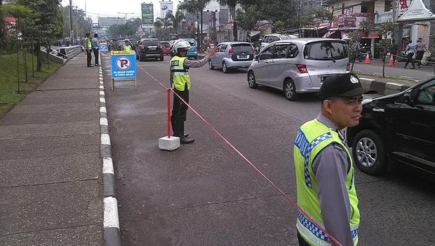 Di lokasi, Senin (8/8/2016), petugas berjaga di sepanjang Jl Raya Jatinangor-Sumedang. Petugas membuat pagar betis dan terlihat berjejer di pinggir jalan mulai dari pintu keluar Gerbang Tol Cileunyi hingga menuju arah IPDN Jatinangor