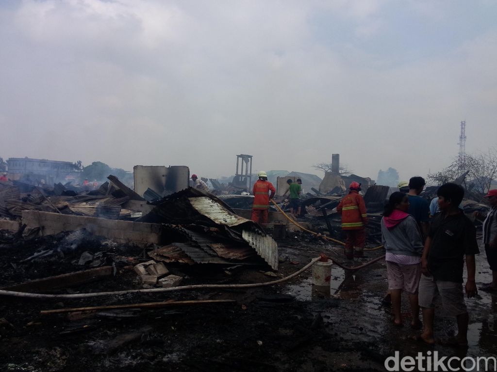 Pantauan detikcom di Jl Gotong Royong, Pondok Bambu, Duren Sawit, Jakarta Timur, Senin (8/8/2016), area yang terbakar cukup luas. Bangunan-bangunan yang semula tegak berdiri itu, kini teronggok hangus menjadi potongan-potongan arang. Juga seng-seng yang semula adalah atap rumah.