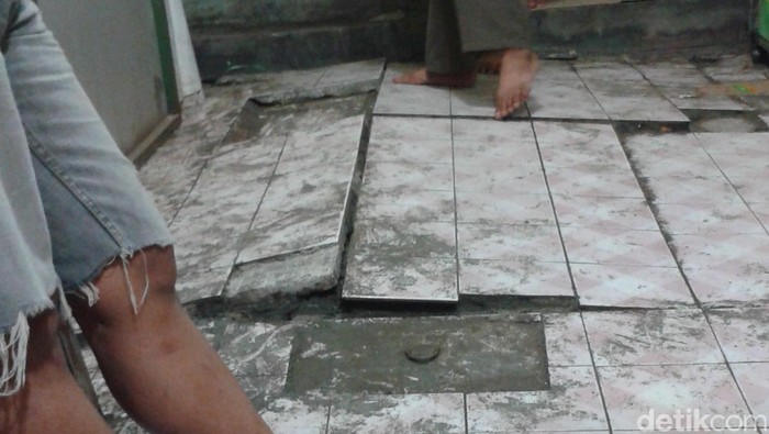 Lumpur berwarna abu-abu itu menggenangi jalanan hingga masuk ke dalam rumah warga. Lumpur juga datang dari bawah keramik rumah warga.
