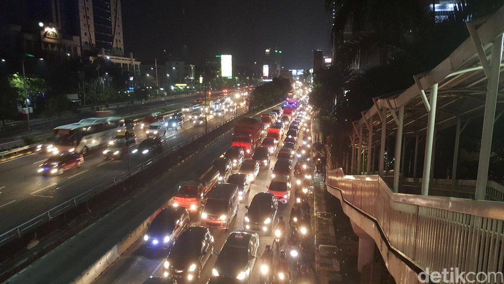 Hingga pukul 21.45 WIB, Senin (8/8/2016) kendaraan bergerak merayap sesekali berhenti.