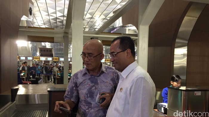 Budi tiba di Terminal 3 Ultimate sekitar pukul 06.00 WIB, Selasa (9/8/2016). Menhub langsung menuju check in counter dan sempat menyapa penumpang yang berada di sana.