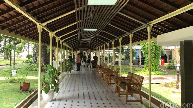 Masuk ke bagian dalam Kompleks Istana, beberapa pekerja tampak sibuk memasang bendera panjang menutupi bagian samping atas koridor yang menghubungkan antara Istana Negara dan Istana Merdeka. Beberapa pekerja lainnya tampak sibuk mengikis dan mengecat bagian tiang dan rangka koridor tersebut.