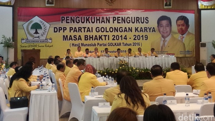 Pengukuhan pengurus ini berlangsung di Aula Kantor DPP Partai Golkar, Jl Anggrek Nely Murni, Slipi, Jakarta Barat, Jumat (12/8/2016). Dari 279 pengurus yang dikukuhkan, ada 14 orang yang berhalangan hadir.