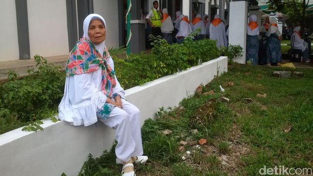 Di lokasi yang sama, di antara rombongan haji, tampak seorang nenek dengan wajah keterharuan. Dia adalah Nursimah (68) asal Senen, Jakarta Pusat