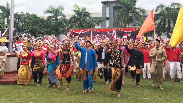 Rekor pertama yang dipecahkan adalah menyanyikan lagu "Hari Merdeka" yang dipimpin oleh musisi Addie MS dan diikuti oleh para peserta yang tersebar di seluruh Indonesia.