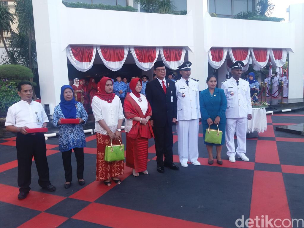 Upacara dimulai sekitar pukul 07.00 WIB. Di depan Tjahjo, berdiri barisan PNS Kemendagri dengan seragam Korpri. Sementara di samping kanan, berdiri puluhan kepala desa dan camat terbaik se-Indonesia yang berseragam putih-putih. Juga ada istri kepala desa dan camat yang berseragam kebaya.