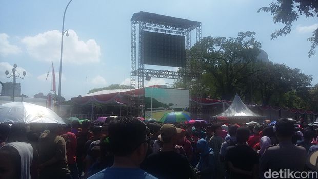 "Tidak apa-apa biar panas juga. Makanya kita udah sedia minuman, makanan, terus koran buat duduk sama payung," lanjut Rudi.