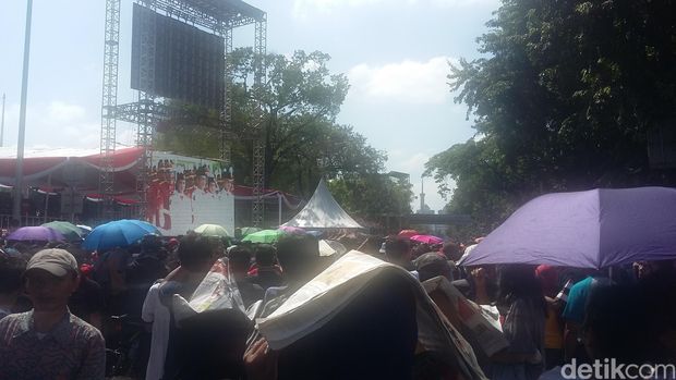 Salah satunya adalah Rudi Ibrahim, warga asal Kota Depok ini rela datang bersama keluarganya sejak pukul 06.00 WIB. Ia sengaja datang pagi untuk mendapatkan posisi yang strategis.