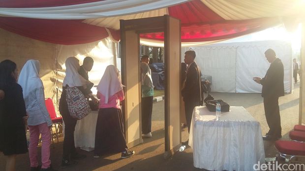 Pantauan detikcom, Rabu (17/8/2016) di Jalan Medan Merdeka Utara, warga DKI tampak mulai memenuhi jalanan yang sudah ditutup untuk umum. Banyak dari warga yang sudah mengambil posisi di depan layar lebar yang telah disiapkan pihak istana.