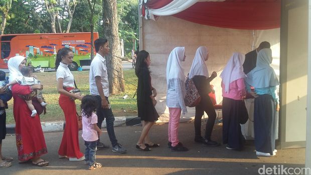 Tak ayal membuat warga pun mulai mengantre di depan pos pemeriksaan. Warga mulai berbaris panjang di Jalan Medan Merdeka Utara.