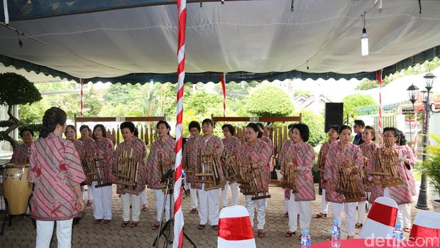 Berbagai hidangan khas Indonesia pun tersaji di meja makan. Selain itu, nuansa Indonesia tampak terasa tat kala alunan musik angklung Gita Pundarika mengalun menemani para tamu undangan dalam menyantap makanan.
