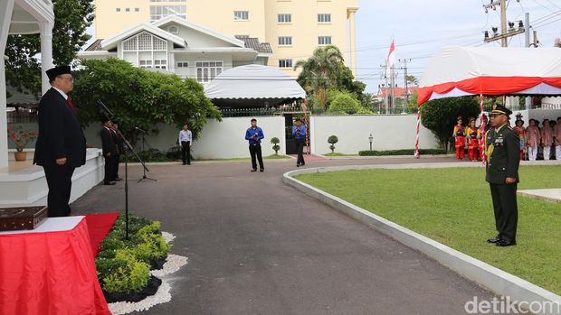 Upacara pengibaran bendera ini dipimpin langsung oleh Dubes Irmawan Emir Wisnandar yang bertindak sebagai inspektur. Serta Kolonel AB Tiranda, Atase Pertahanan yang bertindak sebagai komandan upacara.