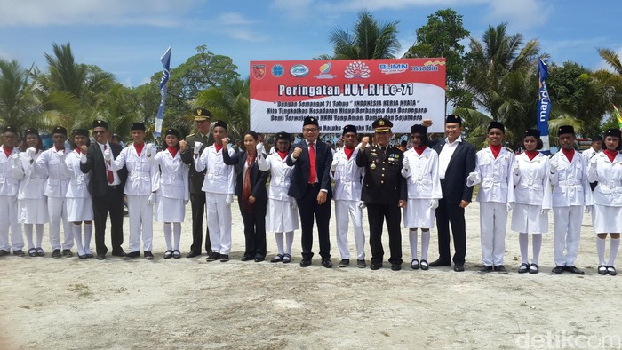 "Upacara 17 Agustus di Pulau Haruku dipusatkan di Dusun Naira, Desa Aboru merupakan kali pertama dilaukan. Terlihat dengan antusiasnya masyarakat dan siswa-siswi dari SD-SMA. Bahkan anak TK pun ingin ikut upacara dan kami persilakan mengikuti di tenda undangan," paparnya.