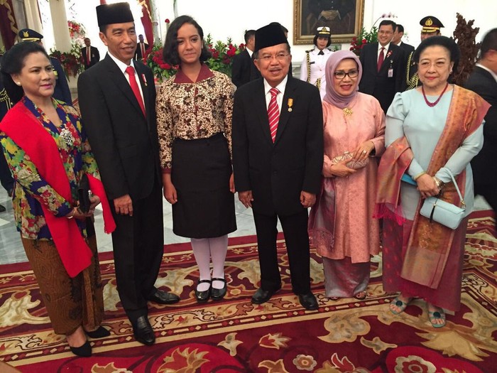 Foto: Gloria Natapradja berpose bersama Presiden Jokowi, Wapres JK dan Ketum PDIP Megawati (Foto: Gatot S Dewabroto-Kemenpora)