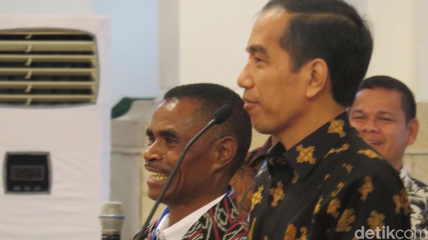 Awalnya ada beberapa orang yang mengangkat tangan. Lalu Jokowi menunjuk seorang pria yang berasal dari Timor Tengah Selatan (TTS), NTT.