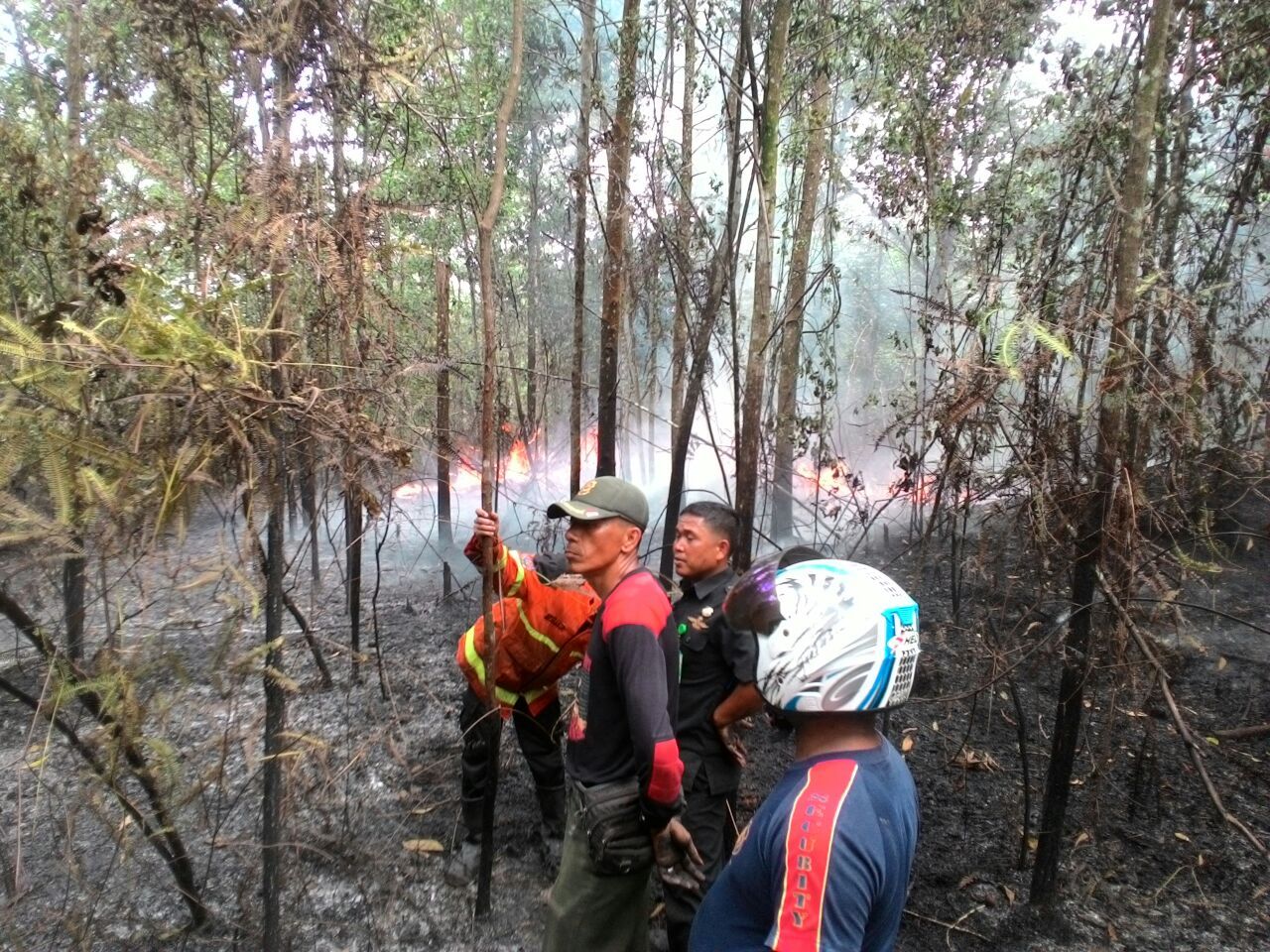 Tim pemadaman dari Polsek Tampan, Damkar Pekanbaru sudah berjibaku, namun lahan terbakar sulit dikendalikan.