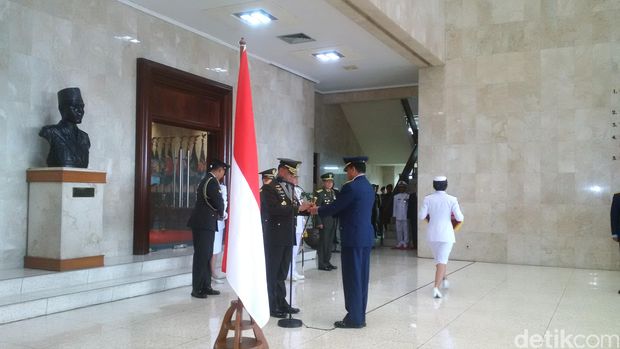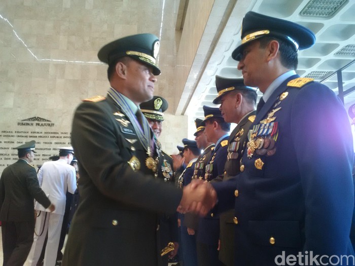 Panglima TNI Sematkan tanda kehormatan pada 78 Perwira Tinggi TNI (Foto: Noval Dhwinuari Antony/detikcom) |