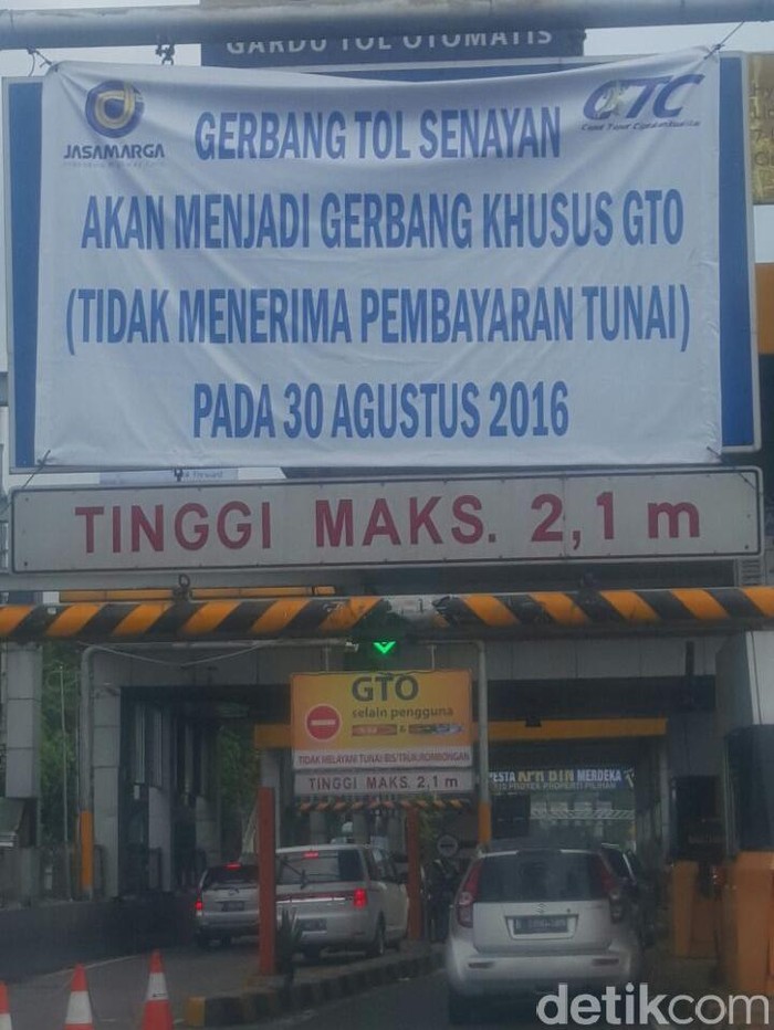 "Untuk mengurangi dampak kemacatan tersebut, pihak pengelola jakan tol dalam kota akan memberlakukan gerbang tol Senayan yang mengarah Grogol secara otomotis (GTO) dan akan diberlakukan mulai tanggal 30 Agustus 2016," papar Budiyanto.