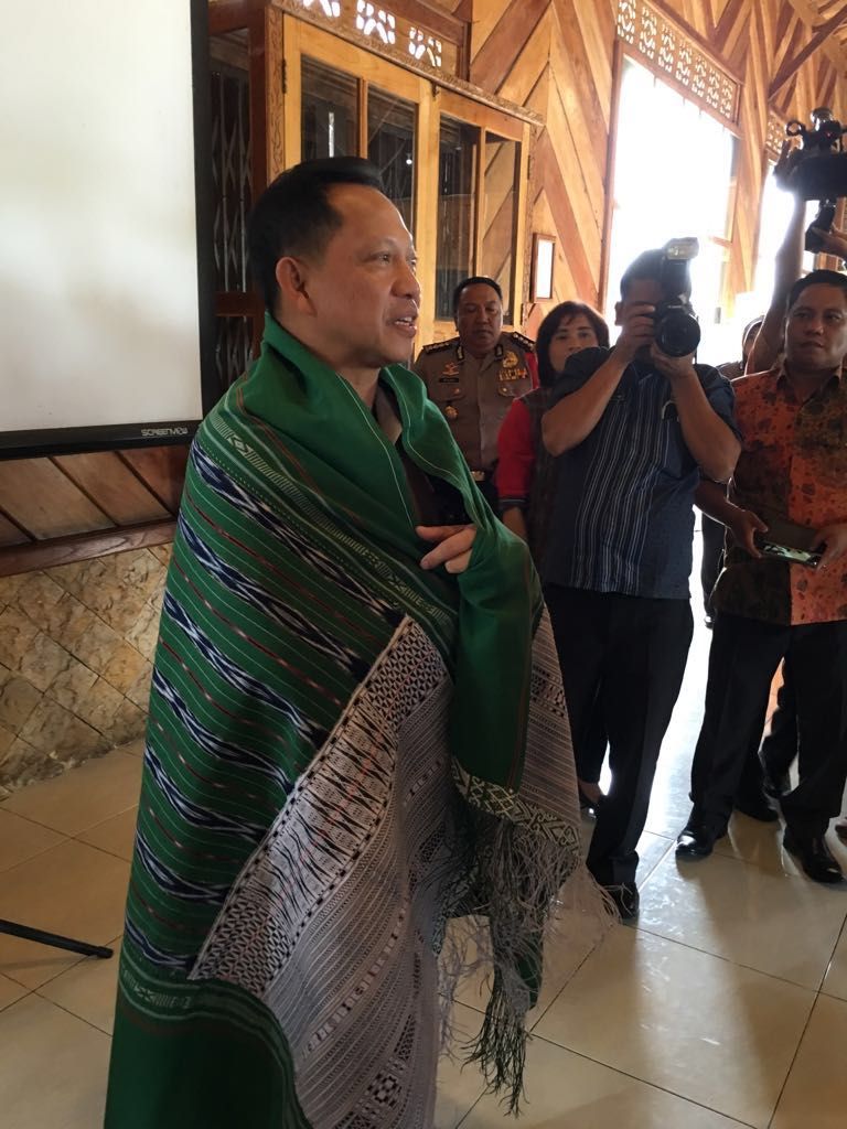Tito disambut Bupati Tapanuli Utara Nikson Nababan. Sebuah ulos kemudian disampirkan ke bahu Tito sebagai penyambutan dan persaudaraan.