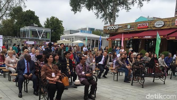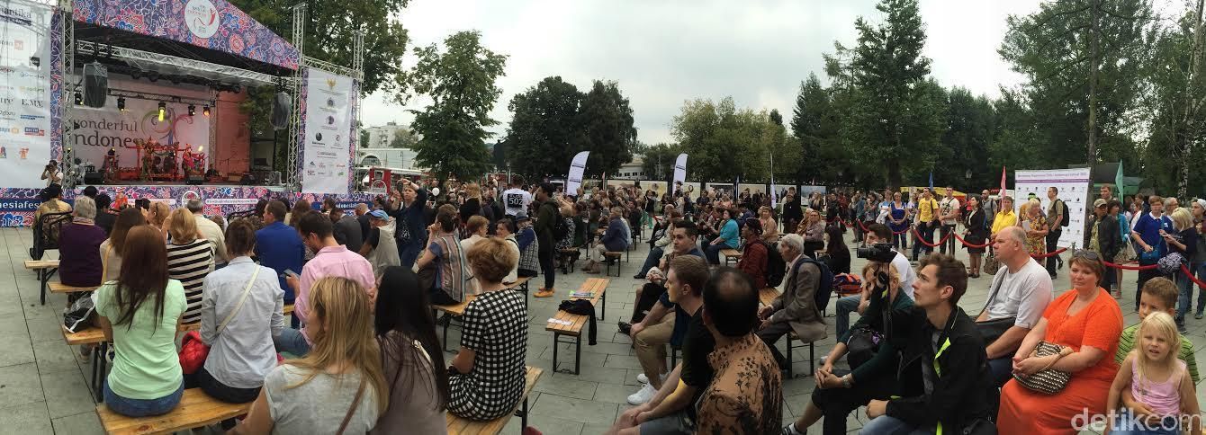 Ratusan warga Moskow pun memadati kursi yang disediakan di depan main stage Festival Indonesia di Hermitage Garden terisi penuh. Bahkan masih ada ratusan warga Moskow yang berdiri di sekeliling menghadap panggung.