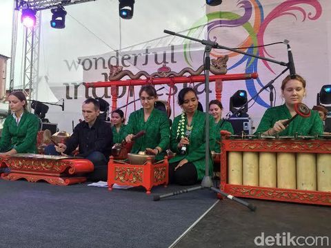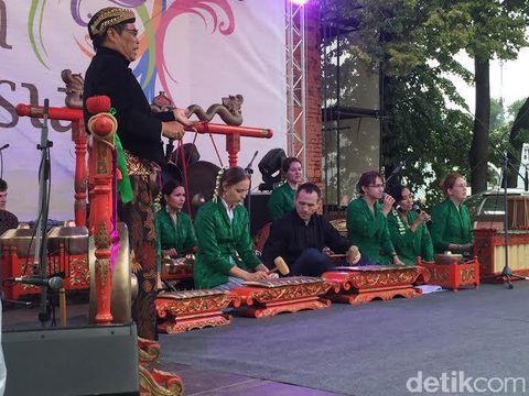 Pertama adalah pertunjukan gamelan yang dimainkan oleh perempuan di Kota Moskow. Gadis-gadis cantik ini juga piawai nyinden atau menyanyikan tembang Jawa.