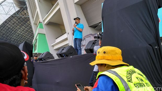 Dia mengajak agar setiap sudut di lokasi ini turut dibersihkan, jangan sampai ada yang terlewat. Mereka akan dibagi-bagi dalam beberapa tim untuk mempermudah pekerjaannya supaya lebih cepat dan efisien dalam masalah waktu. Ada tim yang bekerja di luar dan di dalam stadion. Mereka menyatakan siap untuk bergotong royong.