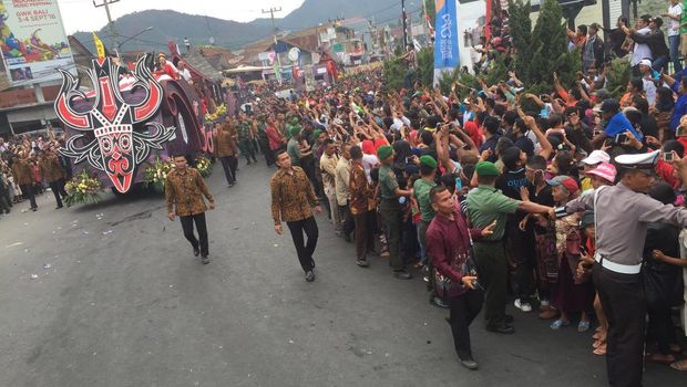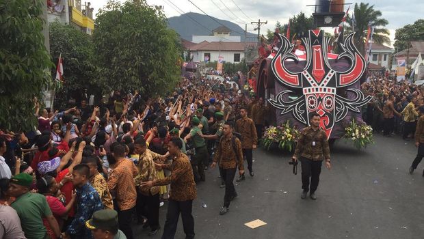 Presiden Jokowi mengikuti Karnaval Kemerdekaan Pesona Danau Toba, Minggu (21/8/2016). Foto: Muhammad Iqbal/detikcom |