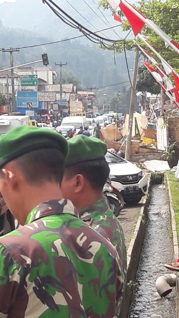 Pembongkaran ini menyedot perhatian warga. Akibatnya lalu lintas dari Jakarta ke Puncak dan sebaliknya macet.