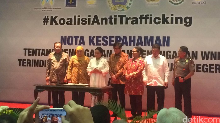 Acara ditutup dengan penandatangan nota kesepahaman tentang pencegahan dan penanganan WNI terindikasi atau korban TPPO di luar negeri oleh ketujuh lembaga negara tersebut. (rvk/rvk)