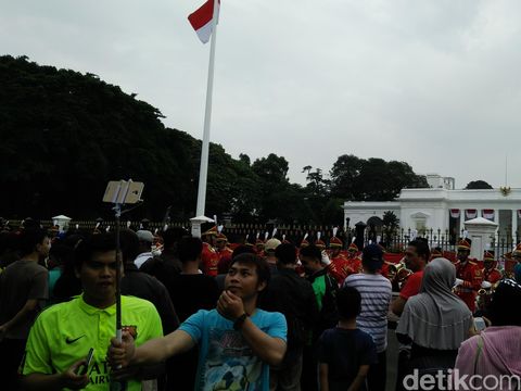 Warga asyik selfie di Istana Kepresidenan saat pergantian jaga Paspampres (foto: Bagus Prihantoro/detikcom)