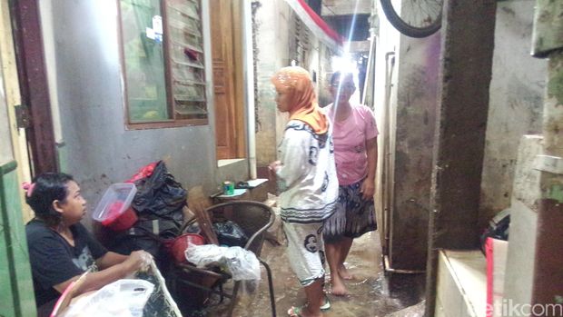 Warga mengeluarkan perabotan rumah yang terkena banjir (Foto: Ahmad Ziaul Fitrahudin/detikcom) |
