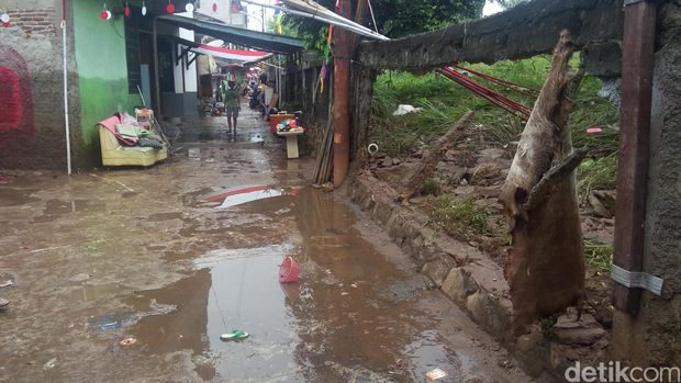 Tembok rumah warga jebol (Foto: Ahmad Ziaul Fitrahudin/detikcom) |