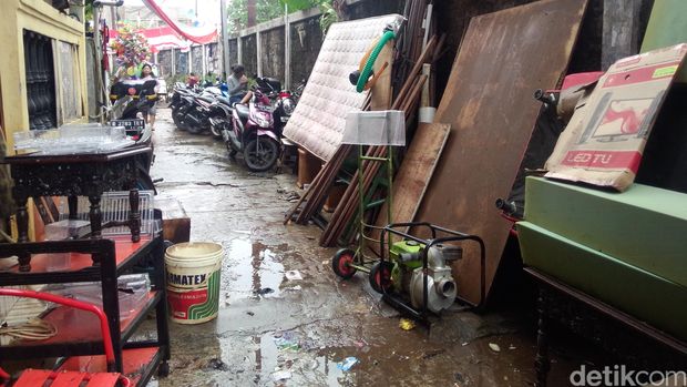 Warga mengeluarkan perabotan rumah yang terkena banjir (Foto: Ahmad Ziaul Fitrahudin/detikcom)