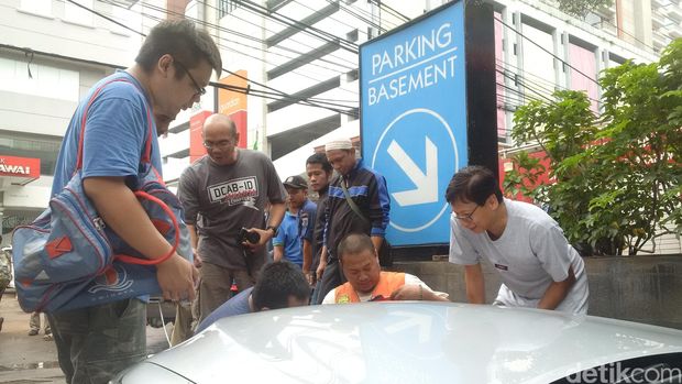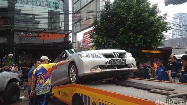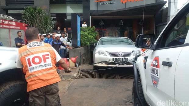 Pantauan detikcom sekitar pukul 10.15 WIB, Minggu (28/8/2016), dua Ford Ranger milik anggota IOF Rescue stanby di depan basement. Sementara sejumlah anggota IOF sedang mengikat tali kawat ke Camry. Tali kawat baja yang diikatkan itu ditarik dengan winch dari dua Ford Ranger itu.